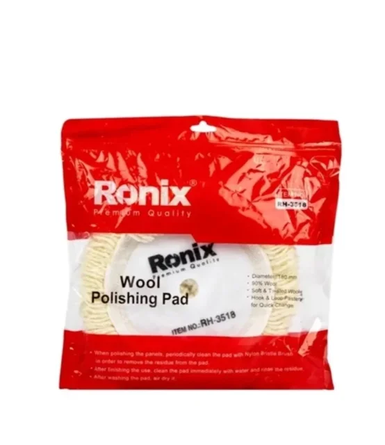 پد پولیش ۱۸ سانتیمتری با صفحه چسبی مقاوم برای اتصال مستحکم و کاربری مداوم، رشتههای بلند مناسب پولیشکاری در گوشهها، نصب و تعویض آسان، بافت مستحکم برای طول عمر بالا، سطح پولیش با تراکم بالا از ۹۰٪ پشم طبیعی، و صفحه کاملاً بالانس برای دقت و کیفیت عالی، قابل استفاده در اکثر دستگاههای پولیش بادی و برقی.